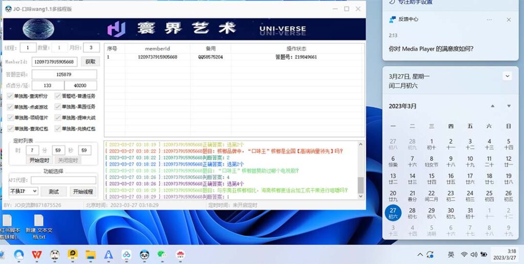 每天都可以自动答题做任务,达到880积分之后记得兑换红包抽奖,保底是2.4元起,抽奖一等奖最高可得600-900元,每周二开奖,号多可以批量挂机操作。(中奖是有概率性的,口味王不是百分百中奖,介意的请勿下单)