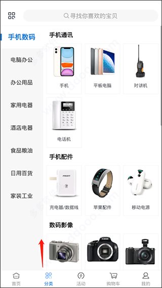 3、同时如果想快速挑选自己需要的商品,还可到“分类”中进行查看;