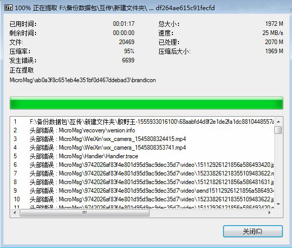 6、完成100%后,无需理会报错提示,点击关闭,即可。
