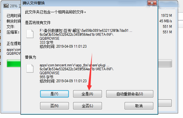 5、解压过程中,有提示文件替换的,全部选是。