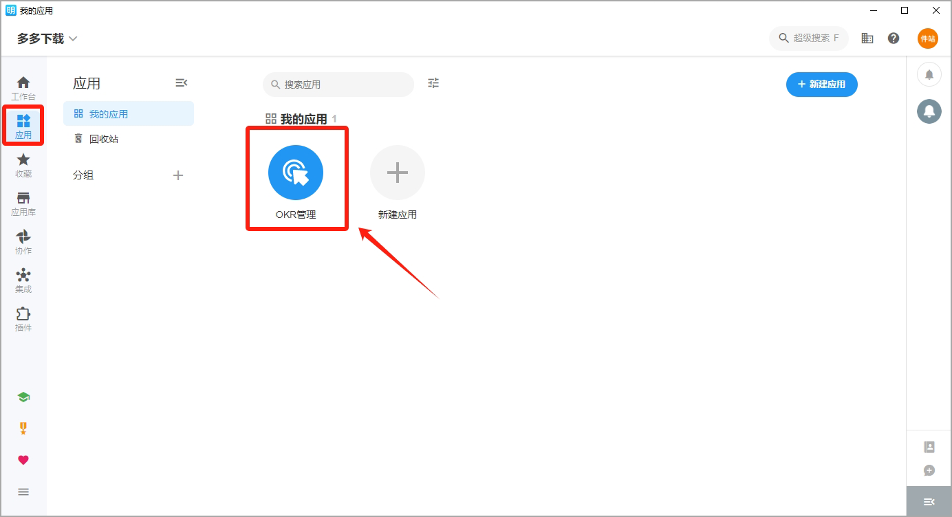 1、登录平台后,在首页左侧导航可以看到应用库,点击即可打开应用库的模板应用。
