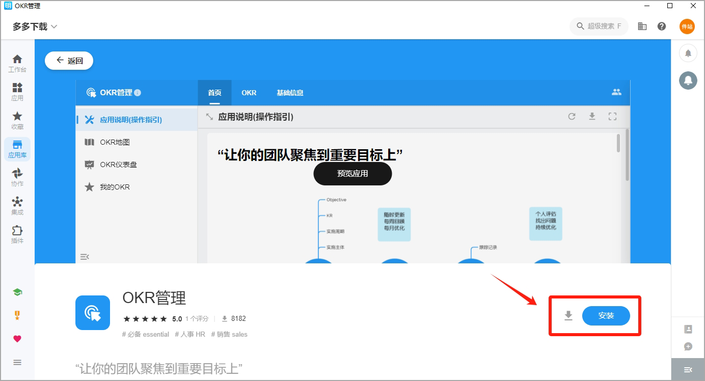 3、进入介绍详情页可以预览,有兴趣后可以点击安装使用。