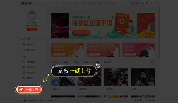 8、点击一键上号;
