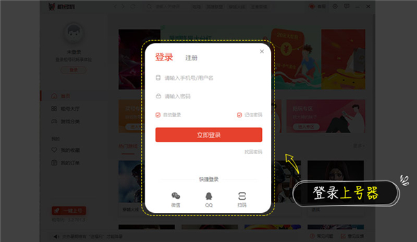 7、登录上号器;