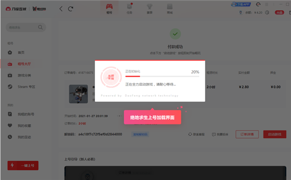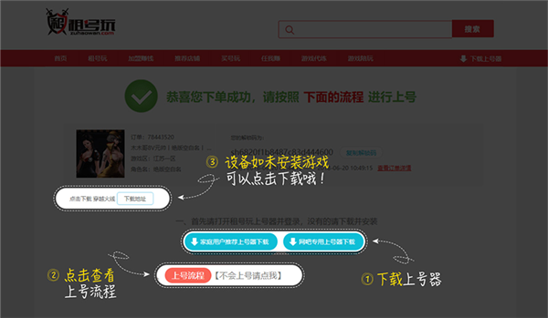 6、下单成功,下载上号器;