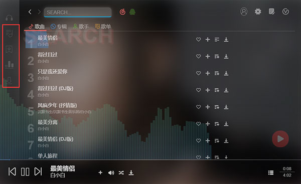 8、此外,软件还支持自定义搜索,只需在搜索框中输入我们喜欢的音乐或者歌手,即可一键找到。