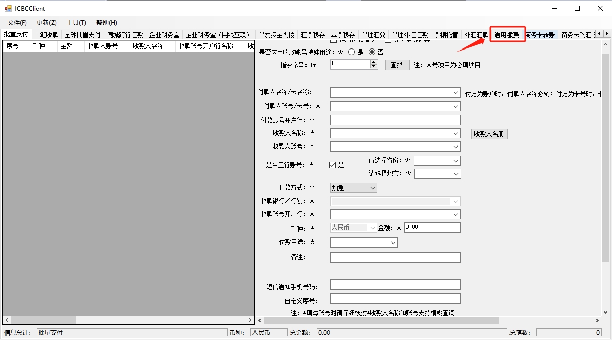 2、然后就可以进入软件页面了,这个时候就可以选择自己需要使用到的选项卡,如“通用缴费”。
