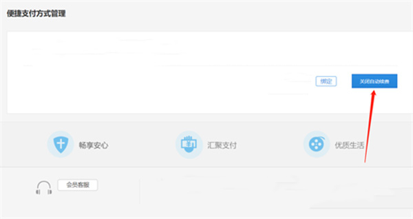 3、进入便捷方式管理界面,选择右边“关闭自动续费”即可取消自动续费了。