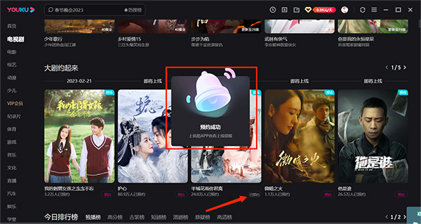 3、弹出“预约成功”提示,已成功预约电视剧了。