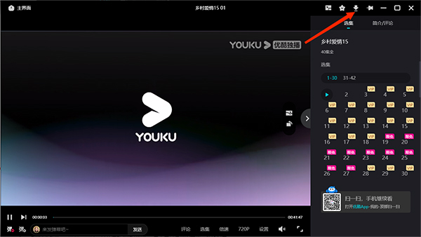 2、进入乡村爱情视频界面,选择要下载的集数,这里以第一集为例,选择数字“1”选项,