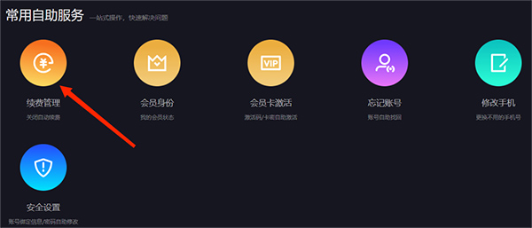 2、进入常用自助服务界面,选择“续费管理”图标,